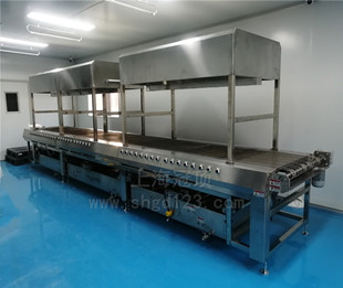 食品紅外線烘烤爐尺寸規(guī)格(約):總長6800mm、上料段長600mm,電熱烘烤段長5000mm、出料段長600mm、爐道口寬800mmX高300mm、外寬1000*高1600mm(不含爐體外設施高度) 溫區(qū):分2個溫區(qū)獨立控制。 溫度范圍:室溫~+500℃,可調,可恒溫 。 溫度均勻度:±2%℃(恒溫狀態(tài)下,空載測試) 儀表溫控精度:±1℃ 升溫速率:≥8℃/min 外殼溫度:溫升不超過環(huán)境+15℃,接縫處周邊除外。 電源:三相五線制,380V,50HZ 加熱管:SUS304不銹鋼翅片發(fā)熱管加熱,具有耐高溫,散熱快的特點。 加熱總功率約:40KW。我司專業(yè)生產(chǎn)各類食品網(wǎng)帶式烘烤爐、隧道爐、食品烘箱等設備。
