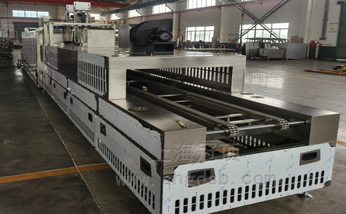 400℃高溫隧道爐 內膽尺寸:長4000mm*寬670mm*高350mm. 外形尺寸(約):總長10600mm,其中上料段長1600mm、進料過渡區600mm、烘烤段長4000mm、出料過渡區600mm、冷卻段3000mm、出料段長800mm、寬1270mm、高1700mm、操作高度800mm 溫區控制:2個溫區控制(含主控溫和超溫保護控制);爐內含三個測溫點,分別為入口處、中間處、出口處。 溫度范圍:室溫~450℃,可調可恒溫,工件出線溫度≤45℃ 溫度均勻度:±2℃%(恒溫狀態下,空載測試);儀表溫控精度:±1℃ 升溫速率:≥8℃/min;外殼溫度:溫升不超過環境+15℃,接縫處周邊除外。 電源:三相五線制,380V,50HZ 熱源系統:電加熱,不銹鋼翅片加熱管220V*2.3KW/支*24支 熱風運風方式:強制左右底部三面循環運風(請詳細說明,并在圖紙中增加熱風氣流示意圖) 功率(約):烘烤段28KW*2=56KW,總功率約70KW。 具體400℃高溫隧道爐工藝參數請來電詳詢:021-67353639