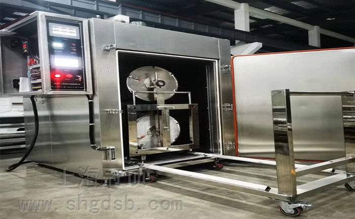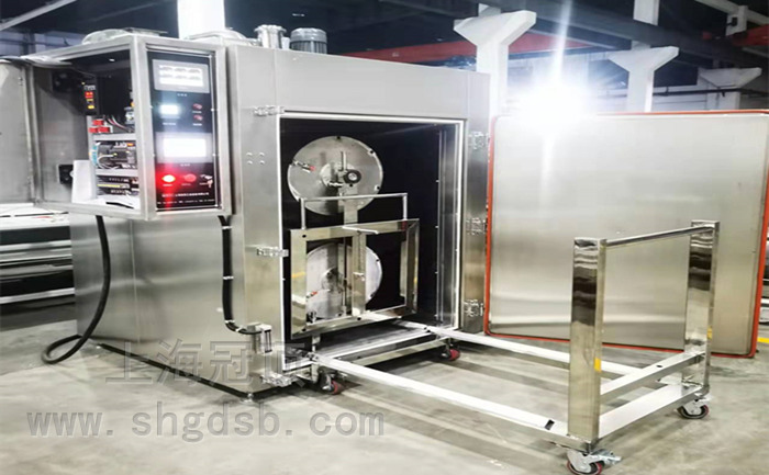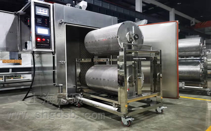 推車烘箱 內膽尺寸:寬1000mm X深1000mm高1500mm. 外形尺寸規格(約):寬1500mm、深1350mm,高2000mm(不含電機、電箱尺寸) 溫區:1個溫區獨立控制,含控溫和超溫保護,6點監測。 溫度范圍:室溫~+250℃,可調可恒溫 。 溫度均勻度:±2%℃(恒溫狀態下,空載測試) ;儀表溫控精度:±1℃ ;升溫速率:≥5℃/min 運風方式:左右上下循環運風;采用1.5KW循環運風馬達1臺,配12寸風輪。 電源:三相五線制,380V,50HZ。配獨立控制電箱。 熱 源:電加熱 ;功率(約):1.總功率約33KW,其中加熱30KW、運風風機1.5KW、抽風風機0.37KW、傳動減速電機0.37KW/2臺。 滾筒推車: 1、配子母推車2臺,滾筒4只,均采用SUS304不銹鋼制作; 2、滾筒自轉采用2套獨立變頻電機傳動,轉速控制在2-3轉/min; 3、二只滾筒在水平方向定位打開門,子推車采用耐高溫V型輪,母車配膠輪防地面劃傷。 我司專業生產推車烘箱、臺車烘箱、推車烤箱等設備,具體參數工藝請來電咨詢:021-67353639,18930058003